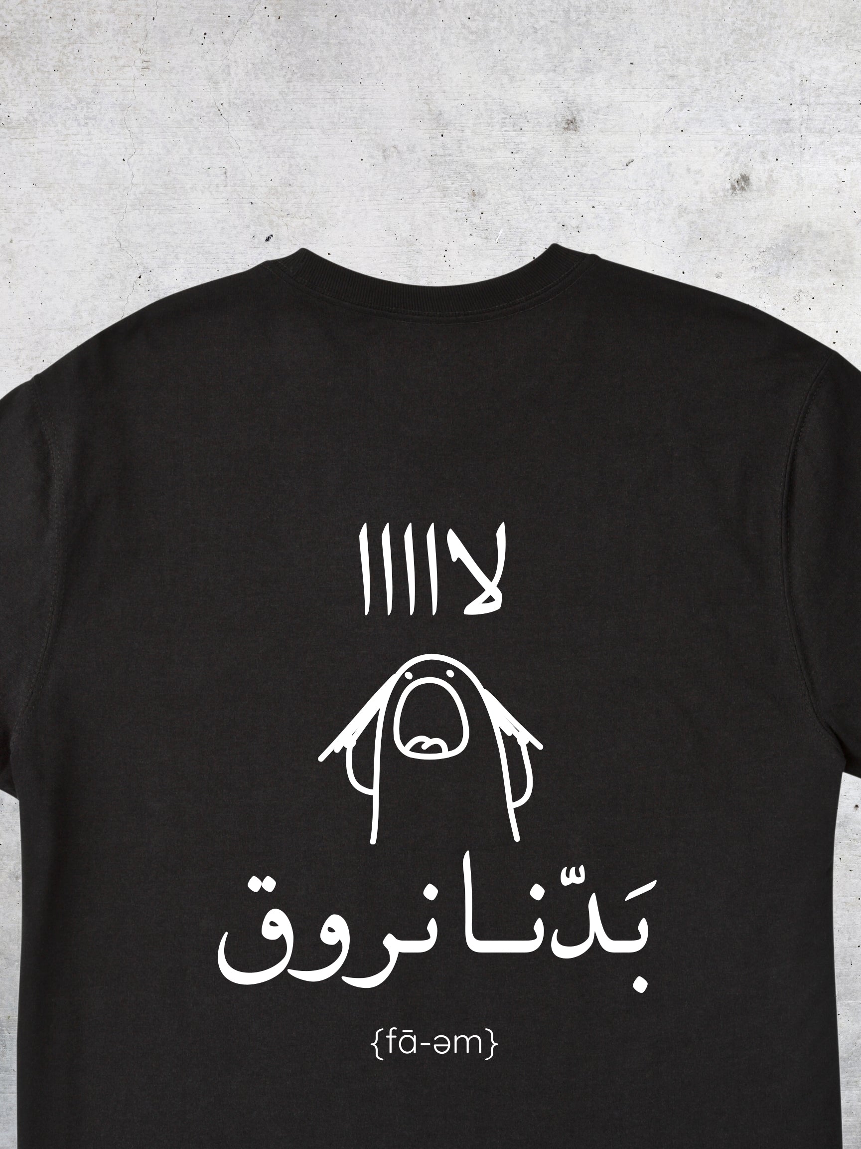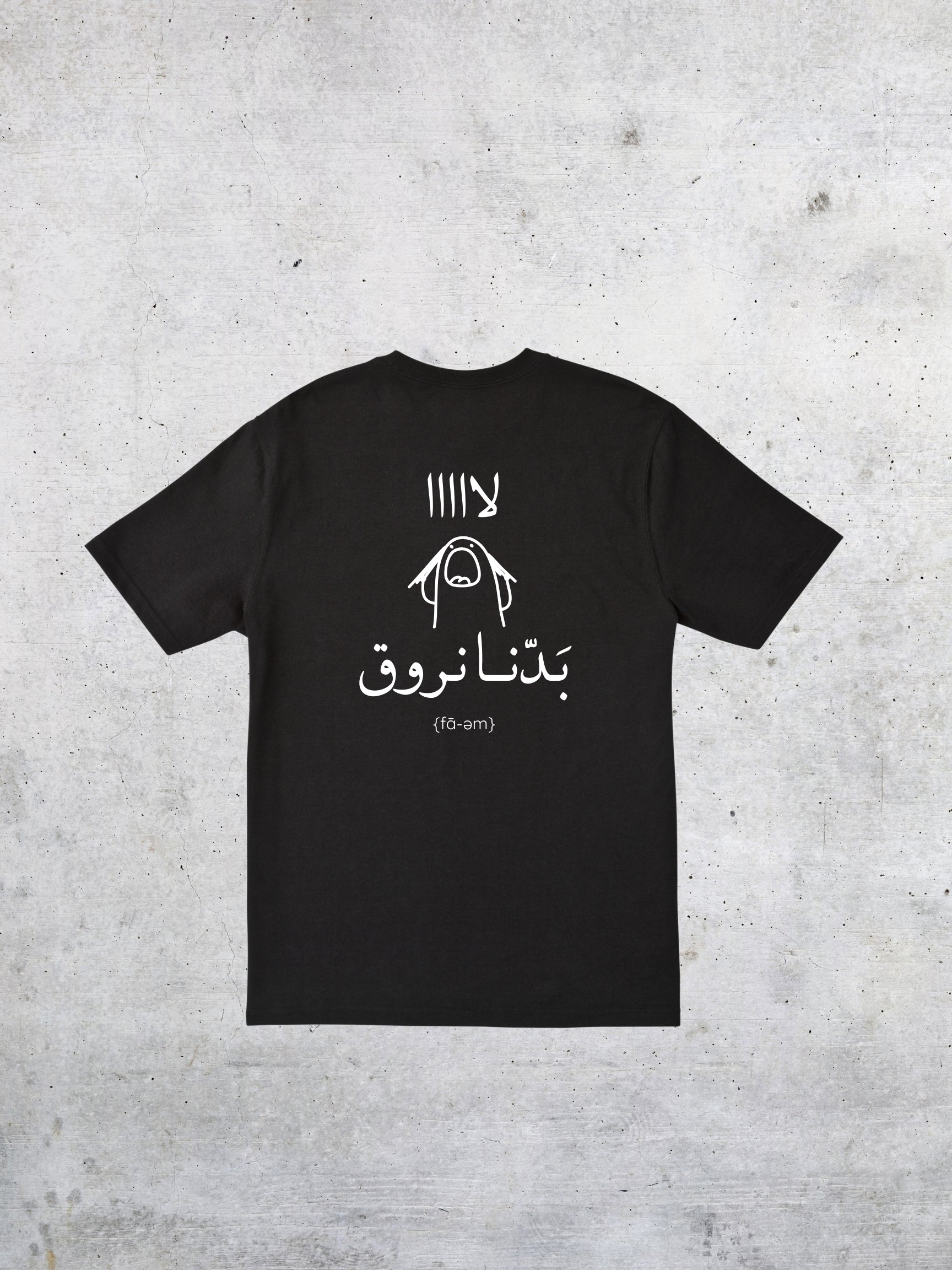 This tee captures that pause-before-you-lose-it energy — minimal design, bold Arabic statement, and effortless attitude. It’s not loud. It doesn’t try too hard. It just lands.