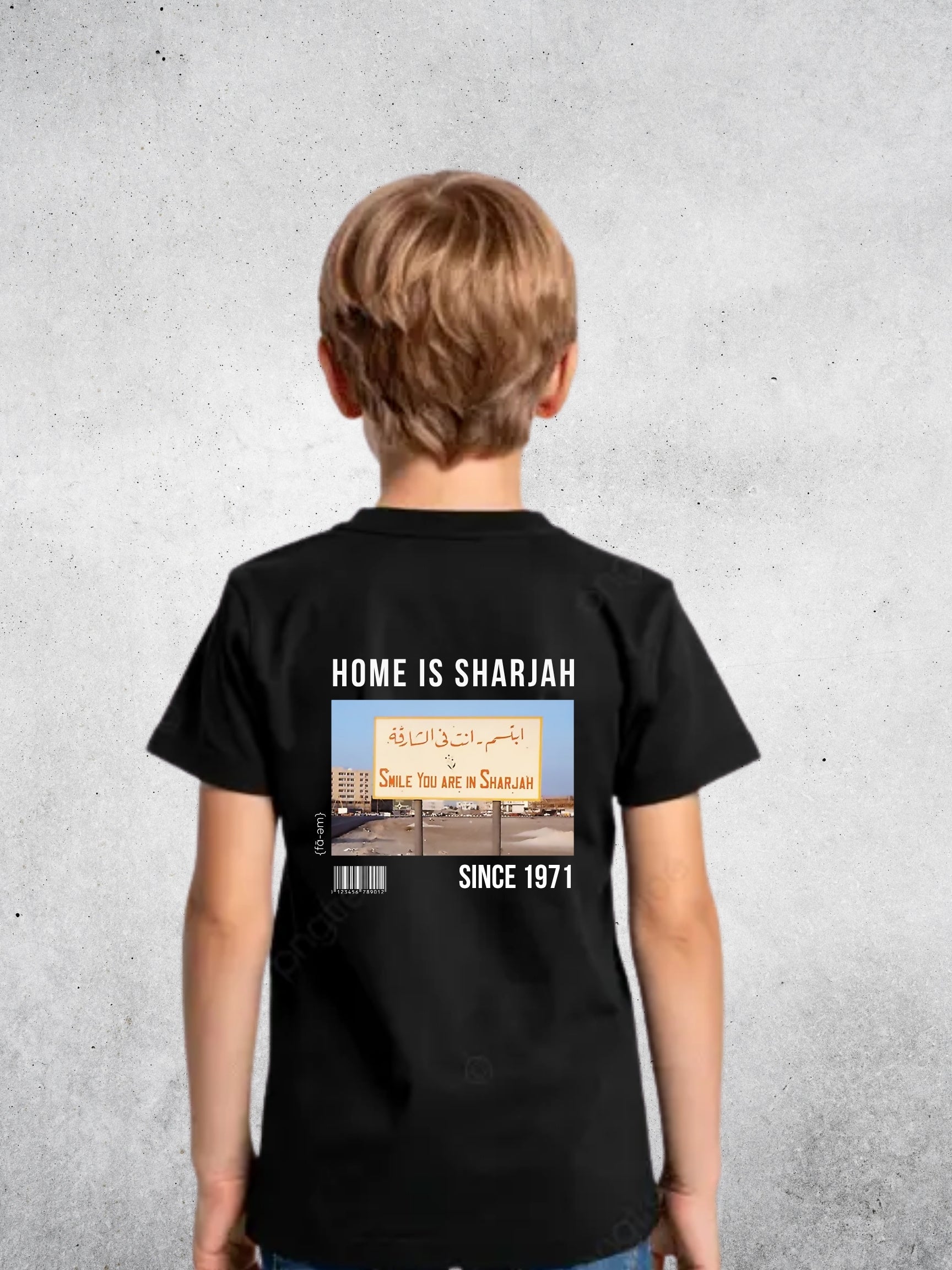 The Home Is Sharjah tee celebrates the city of tradition and soul, where calm meets charisma. Featuring the nostalgic Arabic-English sign “Smile, You Are in Sharjah” and the timeless statement “HOME IS SHARJAH”, this design bridges heritage and modern streetwear in true Fa-em fashion.
