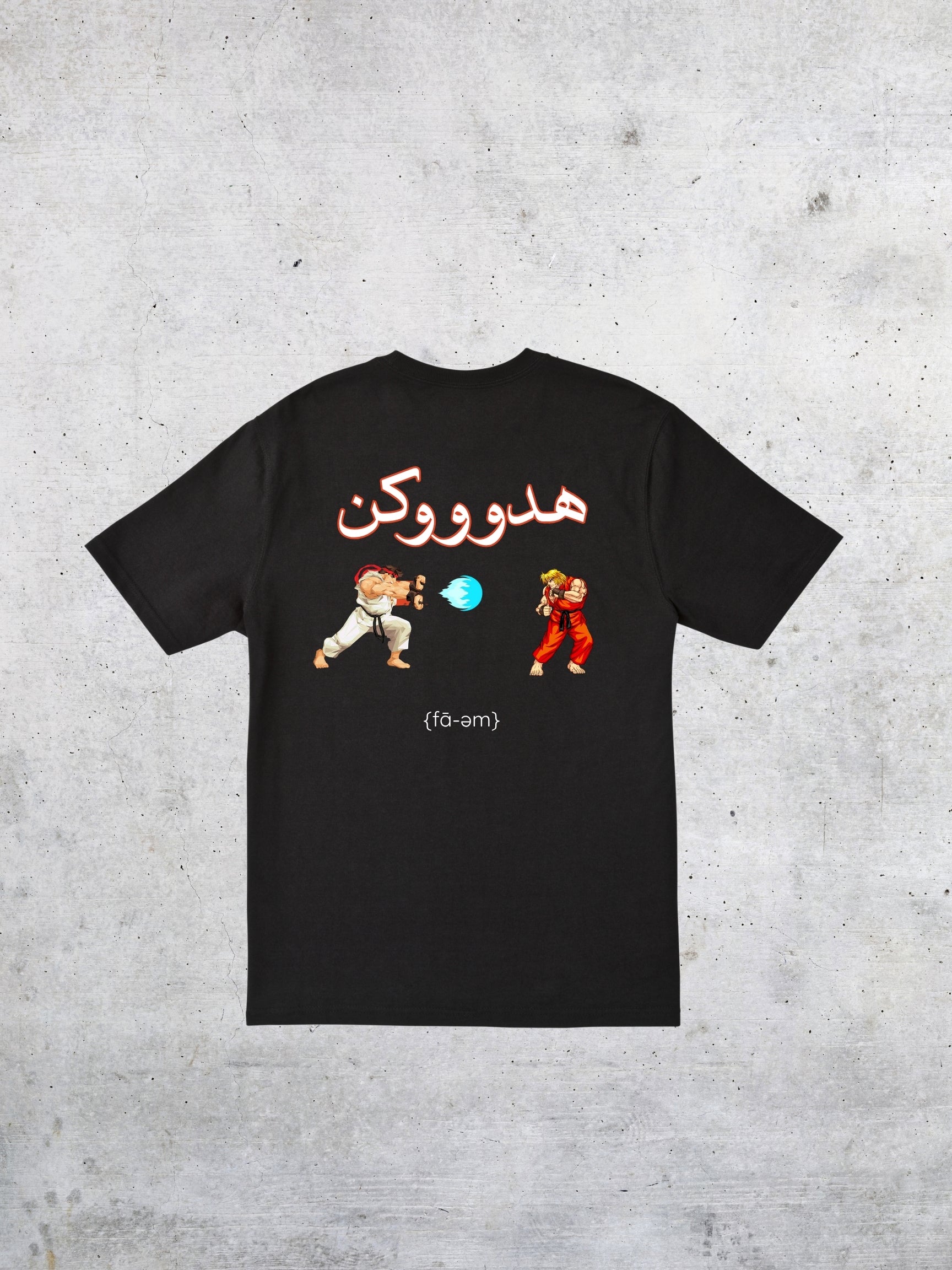 This Faem exclusive brings Street Fighter energy to the streets, featuring the iconic Hadouken moment, reimagined in Arabic calligraphy.